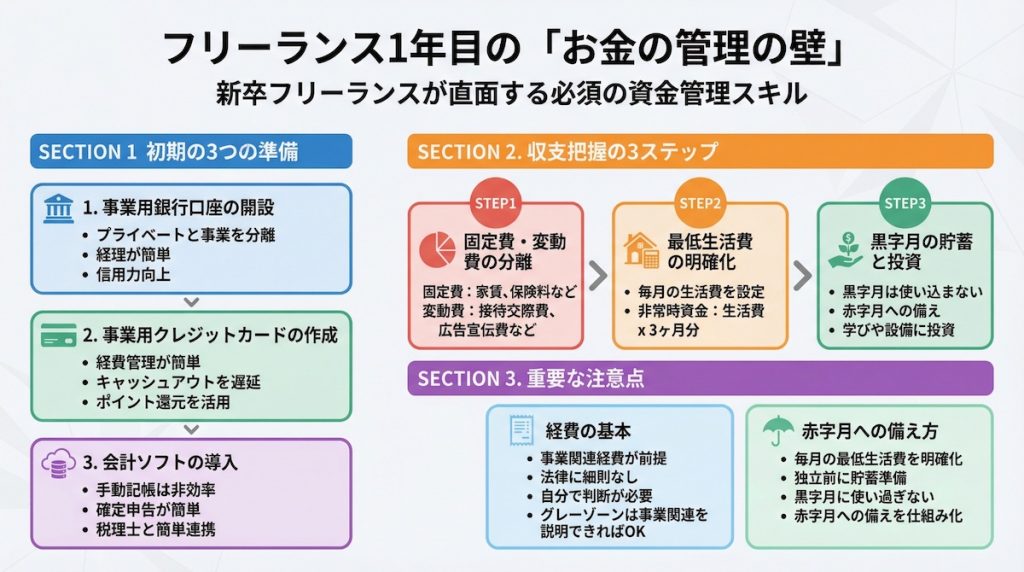 独立1年目のフリーランスにとって、お金の管理は、デザインやプログラミングといった専門スキルと同じくらい、いや、それ以上に重要な「自分を守るためのスキル」です。